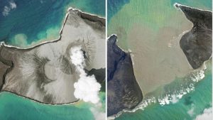 Satellite pictures have emerged showing Tonga covered in ash after a huge undersea volcano erupted.A plume of smoke can be seen rising from Hunga-Tonga-Hunga-Ha'apai volcano....Read More